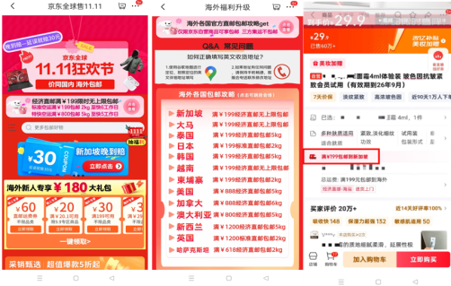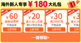 今年京东 11.11 期间,京东全球售海外新用户可直接领取 180 元超值大礼包,其中包含 60 元不限品类直邮运费券与 100 元全品类券,另有专属 9.9 元包邮专区,轻松下单老干妈、国产文具等日常好物。