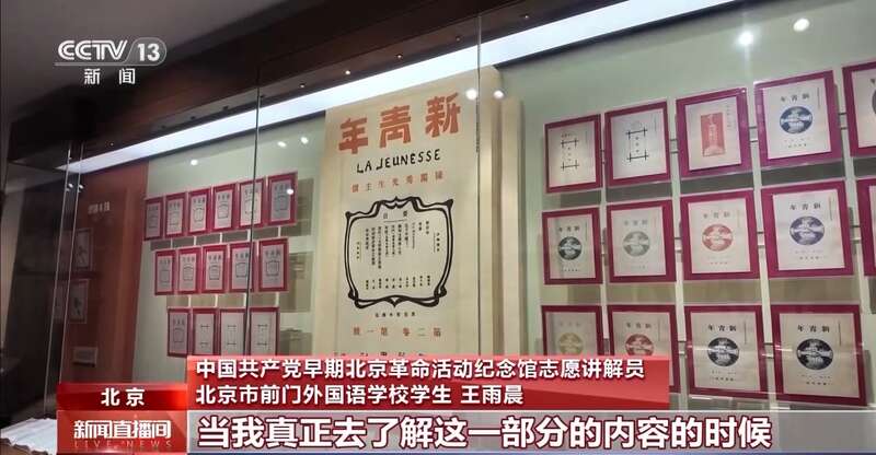 中国早期北京革命活动纪念馆志愿讲解员 北京市前门外国语学校学生 王雨晨:像我刚才介绍到的铜烧水壶,阅读的《明耻篇》批注过的封面,《新青年》的一些展品,当我真正去了解这一部分的内容的时候,发现每一件文物都有自己背后的故事。需要把这种精神传播给更多的人,让更多人去了解这段历史。